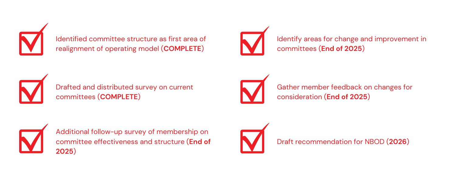- Redesign the Annual General Meeting to focus on member engagement, feedback, and strategic alignment